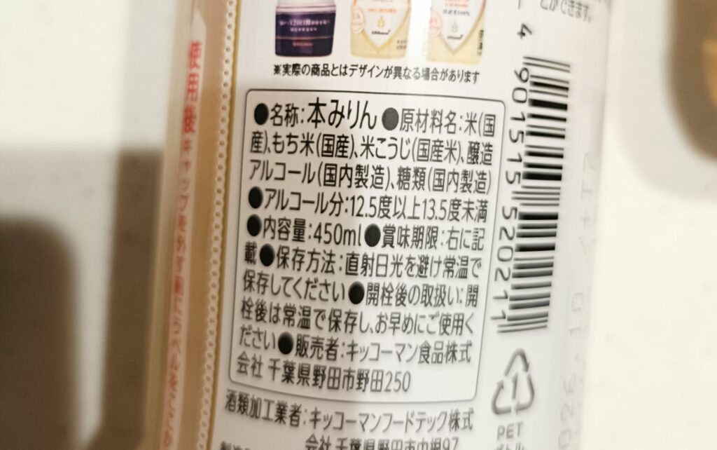 みりんには「本みりん」と「みりん風調味料」がありますが、こちらも原材料がシンプルな本みりんを選んでいます。本みりんでも米と焼酎などの本当にシンプルな原材料で作られてるものがありますが、砂糖の代わりにみりんを代用していることもあり、消費量もある程度あるため、日常使いできる価格帯のシンプルな本みりんを選んでいます。